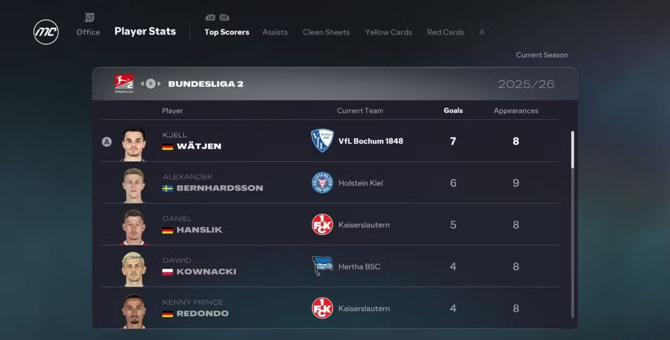 مع إضافة ميزة المحاكاة الأعمق Deeper Simulation في FC 26 أصبح بإمكان اللاعبين اختيار خمسة دوريات إضافية لمحاكاتها بشكل كامل مع توفير إحصائيات دقيقة لكل منها والأمر لا يقتصر على عرض الأرقام فقط بل أصبح تفاعليًا حيث يمكن الضغط مباشرة على هداف الدوري أو الحارس صاحب أكبر عدد من الشباك النظيفة والبدء في متابعته عبر الكشافة أو إضافته إلى قائمة المرشحين للتعاقد.