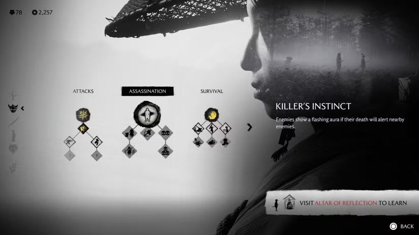 تُعد Killer’s Instinct أول مهارة تعتمد على أسلوب الاغتيال (Stealth/Assassination) يمكن للاعبين فتحها في لعبة Ghost of Yotei، وهي تضيف طبقة تكتيكية مهمة عند اعتمادك على القتل الصامت. فبينما يمكنك عادةً ملاحظة اتجاه نظر الأعداء لمعرفة ما إذا كان قتل أحدهم آمنًا، تمنحك هذه المهارة تأكيدًا بصريًا مباشرًا عبر الهالة التي تحيط بالعدو.