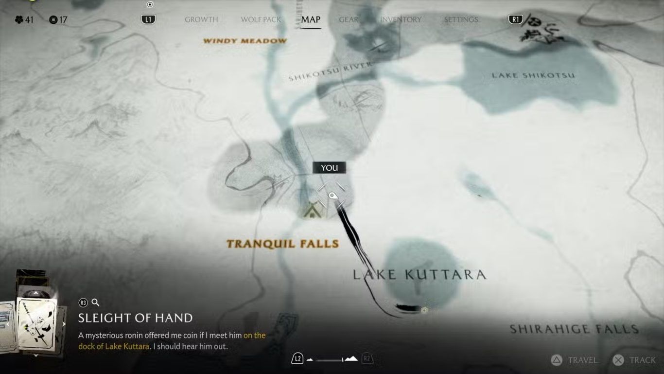 تُعد مهمة Sleight of Hand واحدة من أكثر المهام الجانبية تميزًا في Ghost of Yotei لأنها لا تقتصر على القتال فحسب بل تقدم تجربة جديدة كليًا في عالم اللعبة من خلال إدخال عنصر المقامرة في الأحداث. تقع المهمة جنوب شجرة المبارزة الأولى Dueling Tree في مخيم قريب من شلالات Tranquil Falls وهناك سيلتقي اللاعب بشخص غامض يُعرف فقط باسم Ronin وهو محارب سابق يعيش على الهامش. سيقوم Ronin بدعوة Atsu إلى بحيرة Kuttara لتبدأ مغامرة جديدة تحمل طابعًا مختلفًا تمامًا.