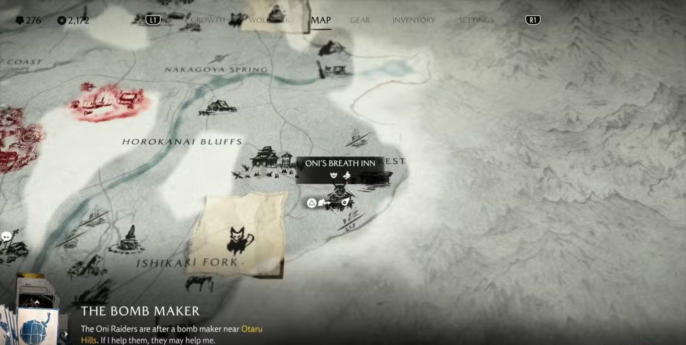 موقع Oni’s Breath Inn في لعبة Ghost of Yotei
