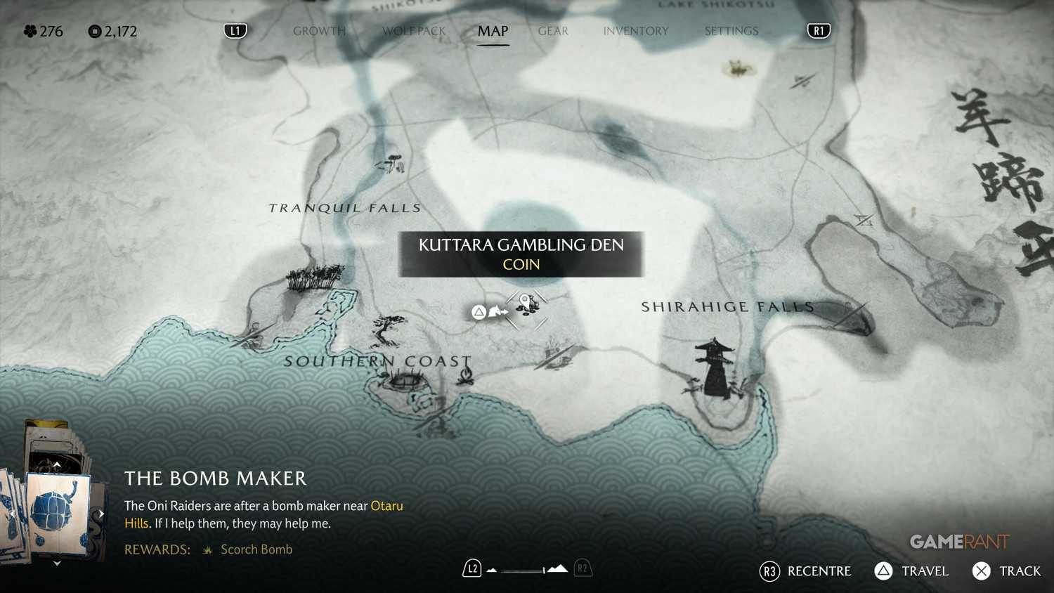 تُعد صالة القمار Kutarra واحدة من أبرز مواقع الألعاب المصغّرة في Ghost of Yotei، وتقع في الجهة الجنوبية من المنطقة، تحديدًا أسفل بحيرة Kuttara مباشرة على الخريطة. عند وصولك إلى هذا المكان لأول مرة، لن تتمكن من الدخول فورًا، لأن رجال عصابة Saito يسيطرون على المكان ويمنعون أي شخص من الاقتراب. بعد لحظات، سيظهر لك أحد الشخصيات غير القابلة للعب (NPC) ليحدثك عن الوضع، ومن هنا تبدأ مهمة جانبية تُعرف باسم Sleight of Hand.