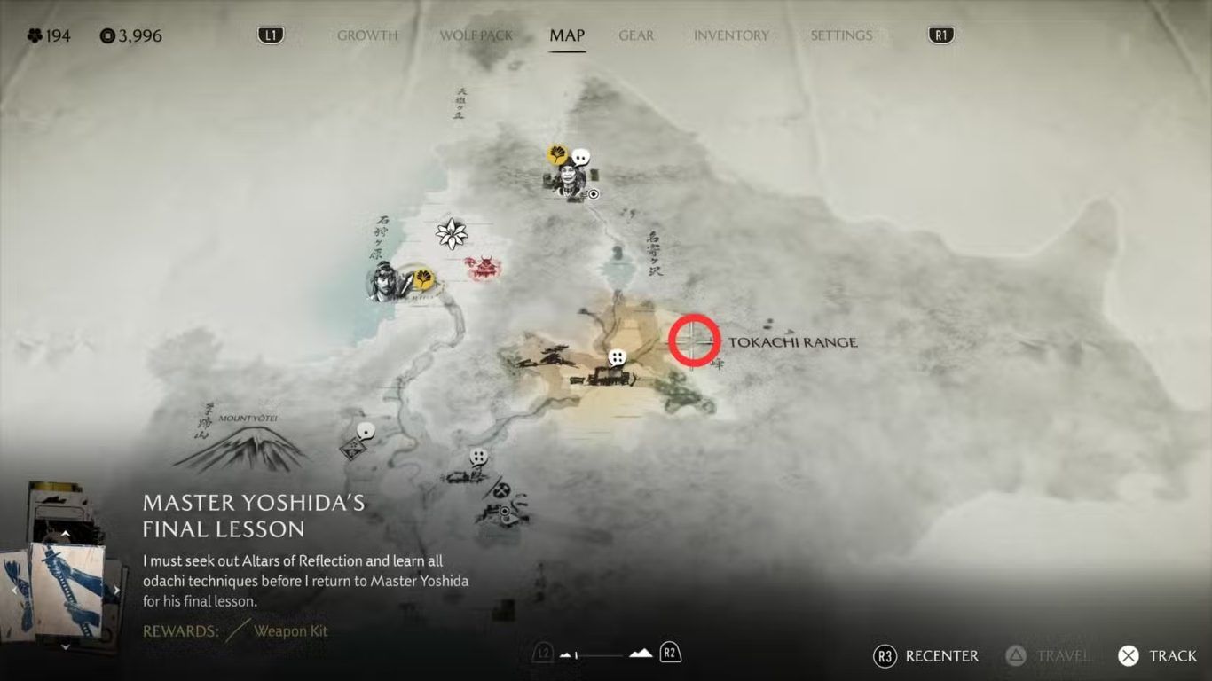بعد الوصول إلى قمة المزار سيجد اللاعب تمثال الإله Futsunushi no Kami الذي يُعد أحد آلهة الحرب في الأساطير اليابانية وبجواره لافتة منقوشة تحتوي على رموز إرشادية يجب تفعيلها بالترتيب الصحيح لفتح المزار عندها يبدأ اختبار بسيط يتطلب صد ثلاث هجمات متتالية من الأرواح الحارسة للمكان بنجاح دون أن تتلقى أي ضرر بمجرد اجتياز هذا التحدي سيُكافأ اللاعب بتعويذة Charm of Futsunushi.