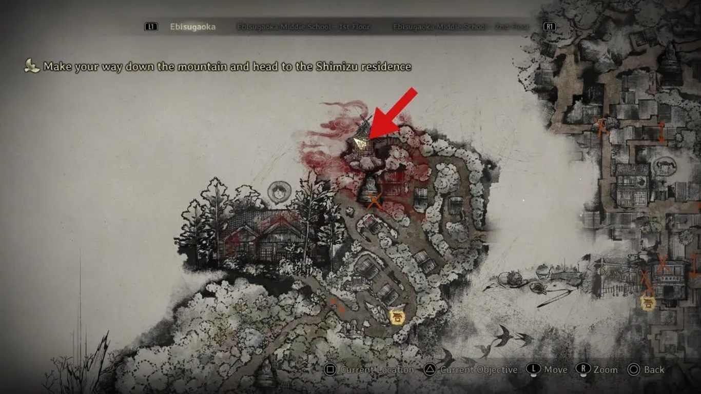 الدليل الوحيد هو العلامات الدموية التي تظهر على خريطة Ebisugaoka، وهي نفس العلامات التي رأيتها في Hermitage، وتظهر شمال التمثال الخامس لـJizo بعد تقديم آخر قربان.