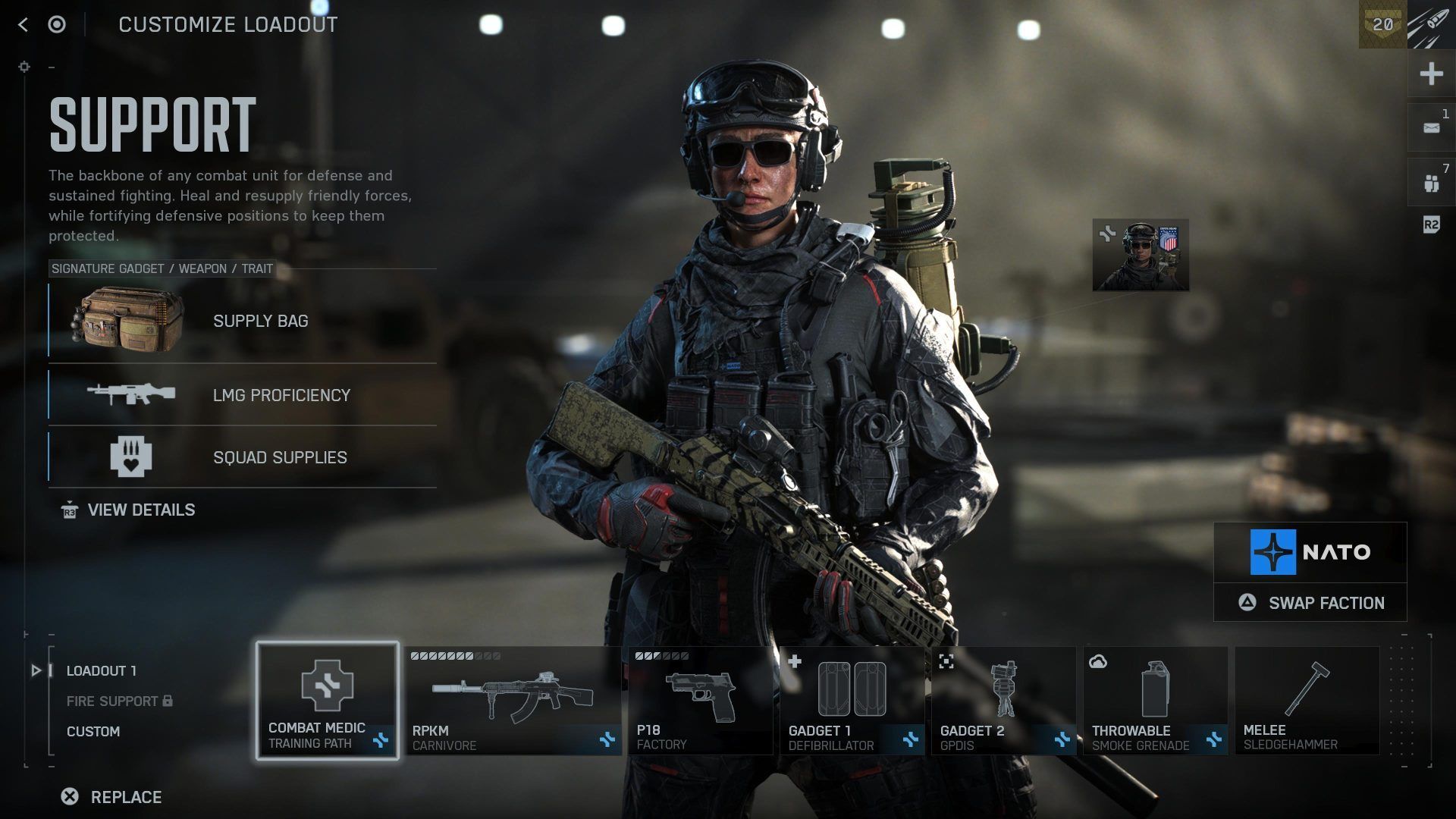 تبدأ اللعبة بسلاح L110، وهو ليس سيئاً، لكنه يعاني من بطء شديد في إعادة التلقيم. ورغم أن فئة Support لا تتأثر بسرعة الحركة أو التصويب أثناء استخدام الرشاشات الثقيلة، إلا أن RPKM – نسخة Carnivore – يُعد الخيار الأمثل في الساعات الأولى من اللعب. فهو يقدم ضرراً أعلى وسرعة تلقيم أفضل، مما يجعله أكثر تنوعاً وفعالية في مختلف السيناريوهات.
