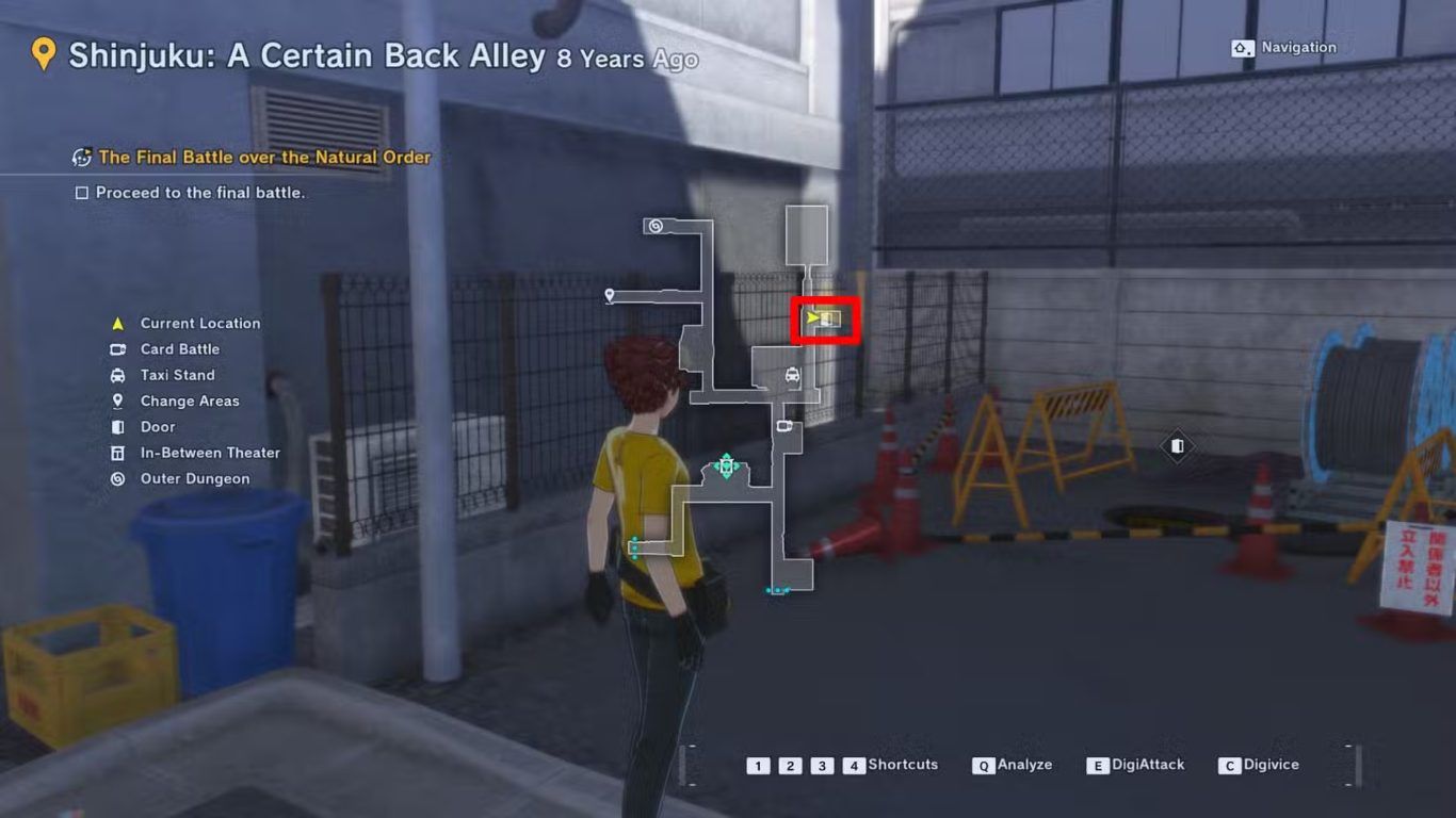 تُعتبر منطقة Shinjuku Underground Waterway وتحديدًا القسم الشمالي North Block من أفضل الأماكن لتنفيذ هذه الطريقة ويمكن الوصول إليها عبر فتحة الصرف الموجودة في منطقة Shinjuku A Certain Back Alley من خط القصة الذي يحدث قبل ثماني سنوات 8 Years Ago وهي منطقة تضم كثافة عالية من الأعداء المناسبين للمسح السريع وإعادة التوليد المستمرة.