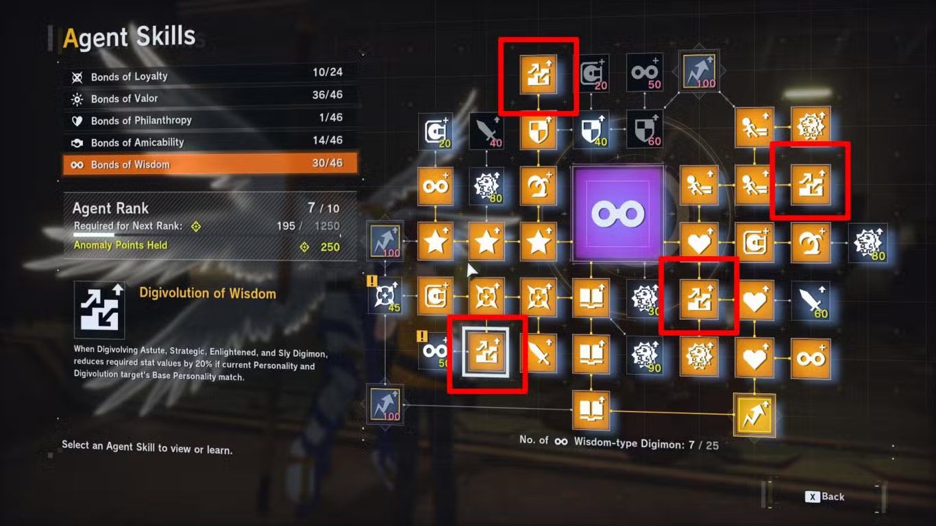 بمجرد أن يتم فتح Shakkoumon في الـ Field Guide يُنصح اللاعبون بالتوجه إلى شجرة المهارات Bonds of Wisdom Agent وفتح عقد Digivolution of Wisdom الأربع لأنها تمثل جوهر تطوير القدرات الذهنية والروحية للـ Digimon وتعد من أقوى النقاط التي تُحدث فرقًا ملموسًا في الأداء خلال المراحل المتقدمة من اللعبة.
