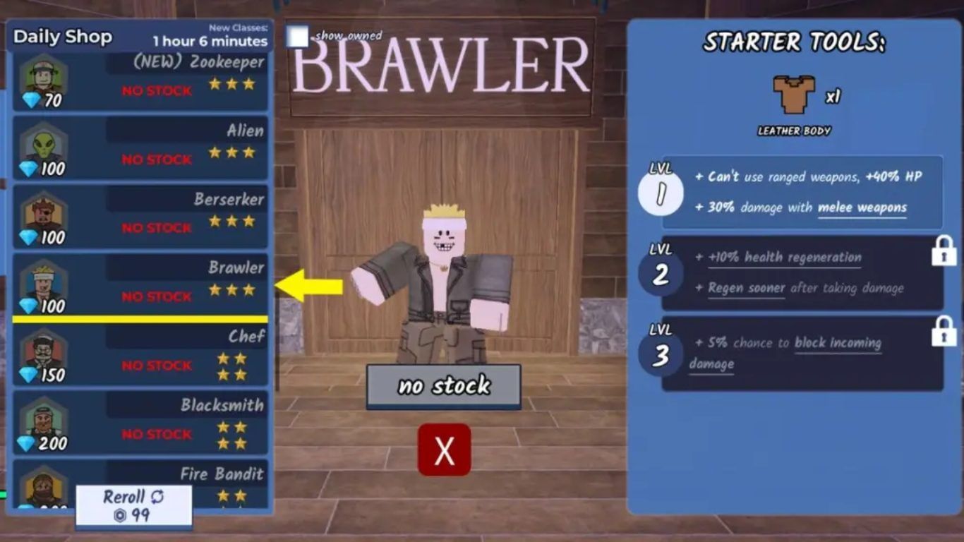 فئة Brawler في لعبة 99 Nights in the Forest في Roblox