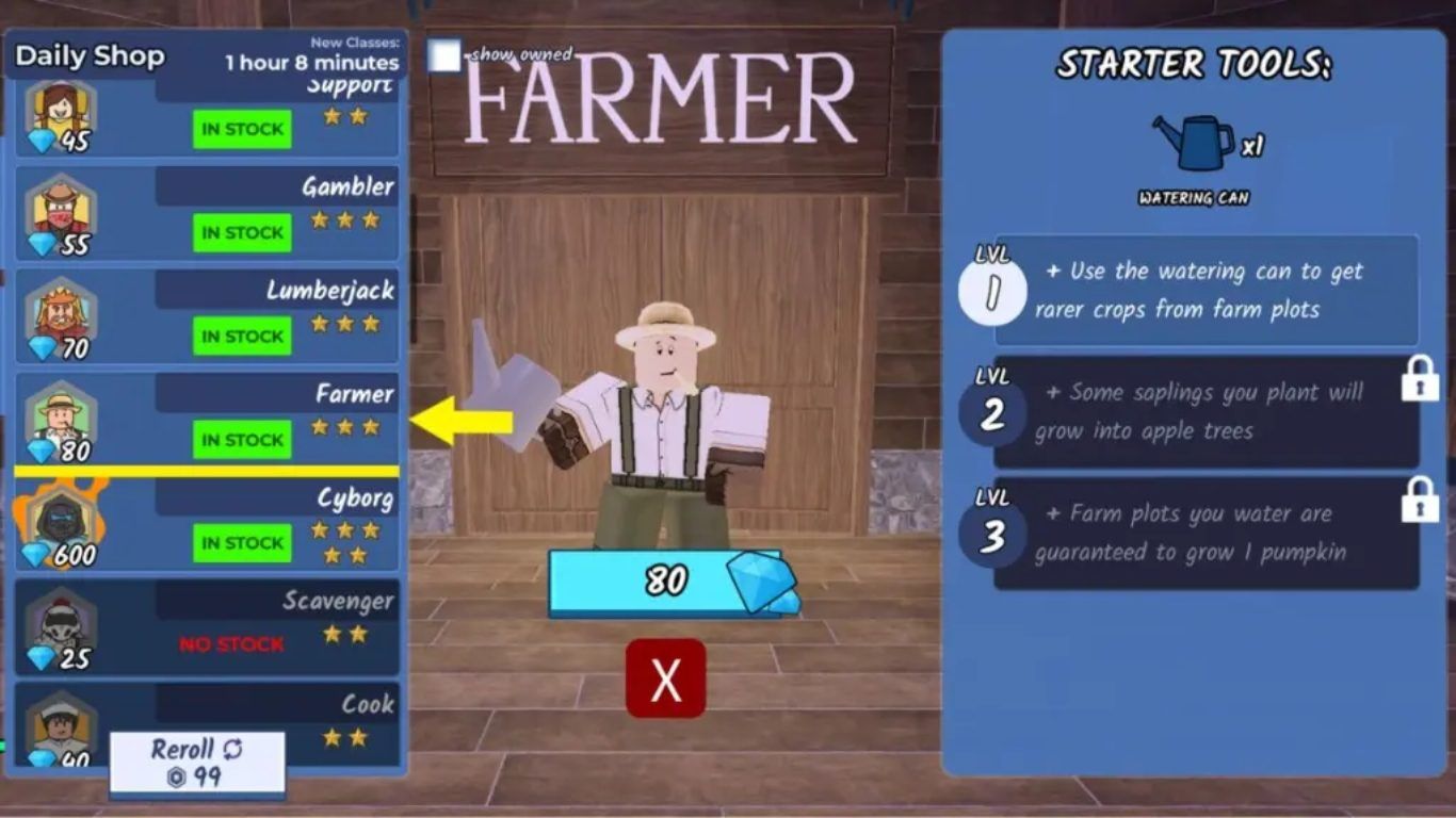 فئة Farmer في لعبة 99 Nights in the Forest في Roblox