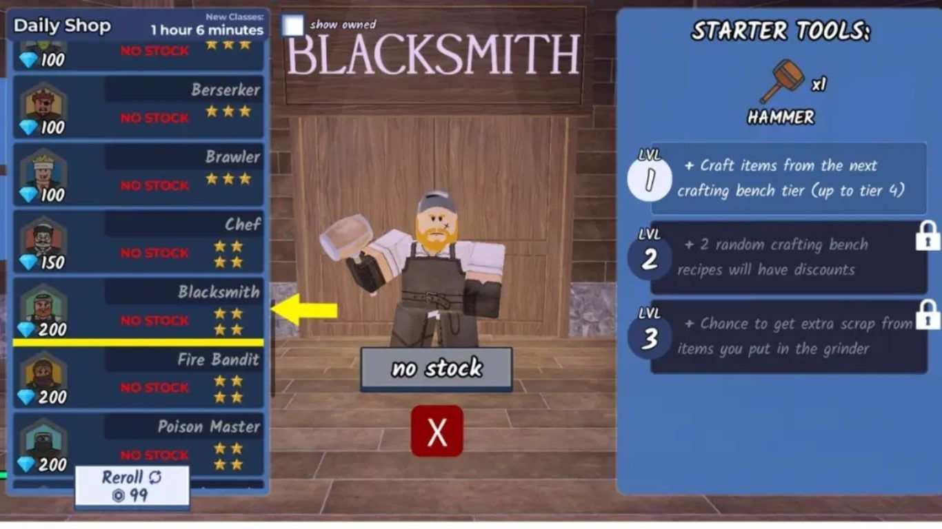 فئة Blacksmith في لعبة 99 Nights in the Forest في Roblox