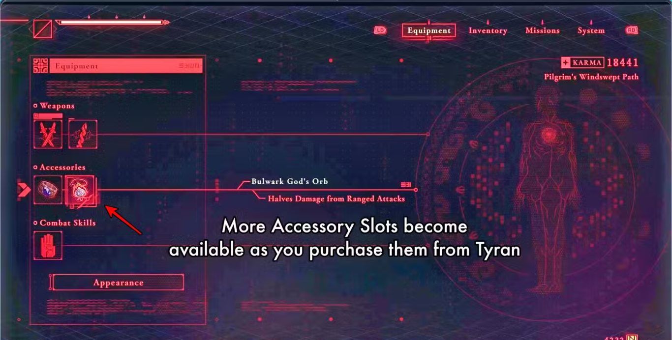 سيلاحظ بعض اللاعبين أصحاب الملاحظة الدقيقة أن الإكسسوارات القليلة التي يمكن العثور عليها في الفصول الأولى من اللعبة تحتوي في وصفها على جزء مخصص لما يسمى متطلبات الخانة وهو ما يشير بوضوح إلى أنه في مرحلة ما من اللعبة ستتمكن من فتح المزيد من الخانات وستحتاج إلى استخدام الإكسسوارات بطريقة استراتيجية تتناسب مع كل موقف قتالي هذه المعلومة صحيحة تمامًا إذ يصبح الأمر متاحًا فعليًا عند الوصول إلى الفصل الرابع طريق الحاج الذي تعصف به الرياح.