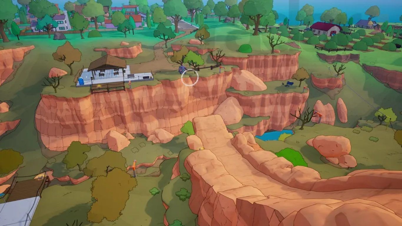 لإكمال هذا الـ Hidden Gag، توجّه إلى منطقة Springfield Gorge، وهي وادٍ عميق يقع مباشرة مقابل منطقة Evergreen Terrace، ويمكنك التعرف عليه بسهولة من خلال المنحدر الطويل المائل المؤدي إلى الحافة الغربية للوادي. ستلاحظ وجود منحدر قفز معدني كبير مثبت على الأرض ومُوجه نحو الفراغ، وفوقه في السماء حلقة طافية مضيئة تمثل مسار القفزة الأسطورية التي حاول Homer تنفيذها.