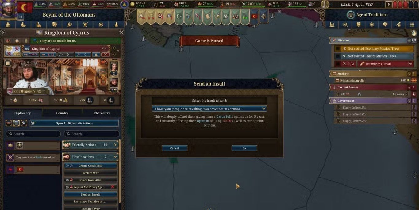 كيفية إكمال مهمة إذلال الخصم في لعبة Europa Universalis 5