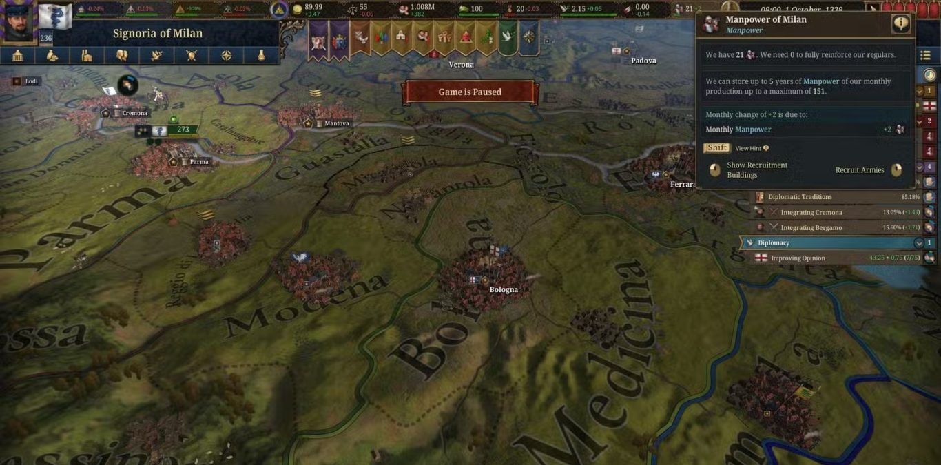 كيفية زيادة القوى البشرية (Manpower) في لعبة Europa Universalis 5