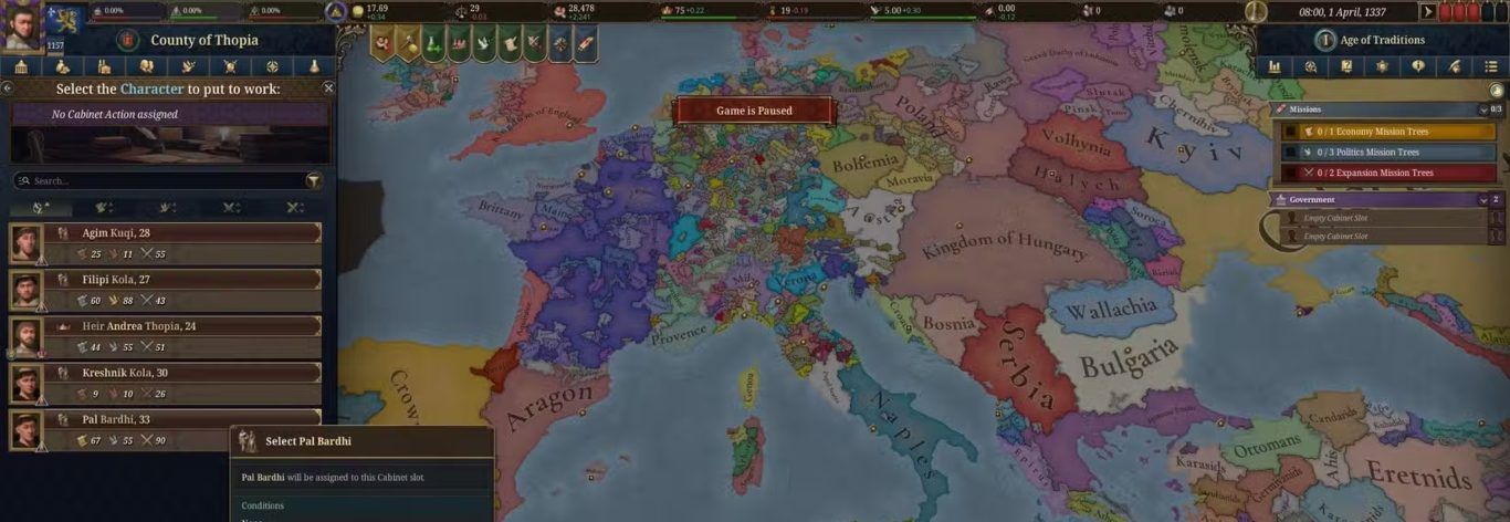 إكمال شجرة مهمة A Capable Cabinet بالكامل في لعبة Europa Universalis 5