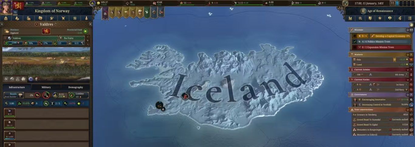 من خلال الانتقال إلى قائمة الاقتصاد (Economy Menu) ثم تبويب التوازن المالي (Balance Tab)، يمكنك تخصيص جزءٍ من الميزانية لتعزيز الإنفاق على البلاط الملكي، وهو ما يُترجم إلى ارتفاعٍ في الشرعية العامة للدولة.