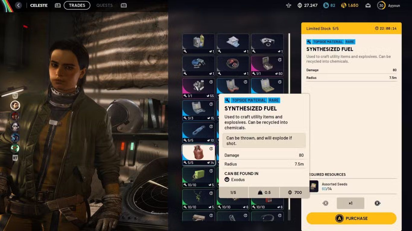 يُتيح نظام التجارة في لعبة ARC Raiders وسيلة بديلة للحصول على مادة Synthesized Fuel دون الحاجة إلى خوض الغارات أو استكشاف المناطق الصناعية الخطرة. يمكن للاعبين شراء هذه المادة مباشرة من التاجرة Celeste التي تُعد واحدة من أهم الشخصيات التجارية في اللعبة والمتخصصة في بيع الموارد النادرة والمكونات الصناعية عالية القيمة.