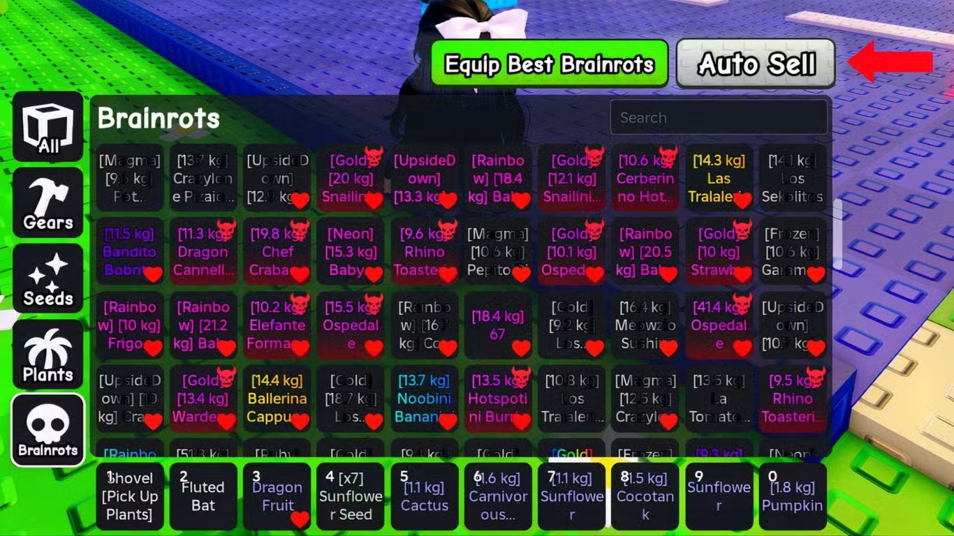 طريقة استخدام خاصية البيع التلقائي في لعبة Plants vs Brainrots
