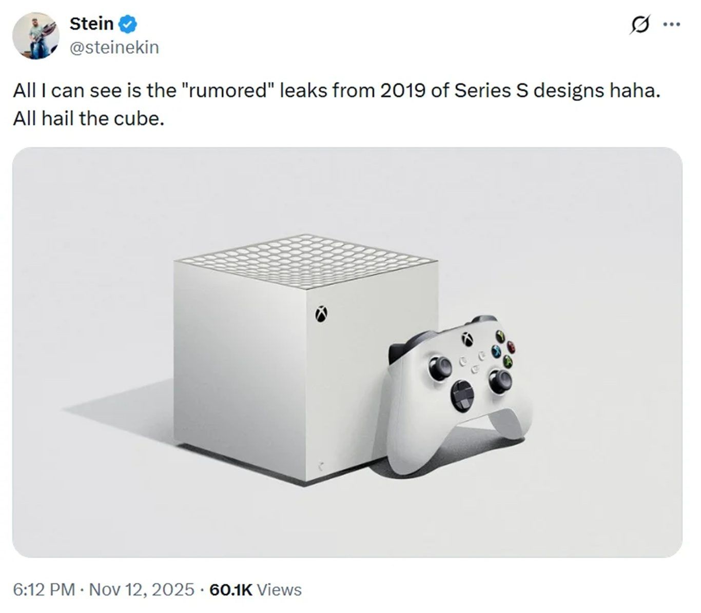 من جانبه، أطلق جوش ستاين، مدير وسائل التواصل الاجتماعي في Xbox، تعليقًا طريفًا على شكل الأجهزة الجديدة من Valve، مشيرًا إلى أنها تشبه إلى حد ما التصاميم “المسربة” لجهاز Xbox Series S عام 2019، وأضاف مازحًا: