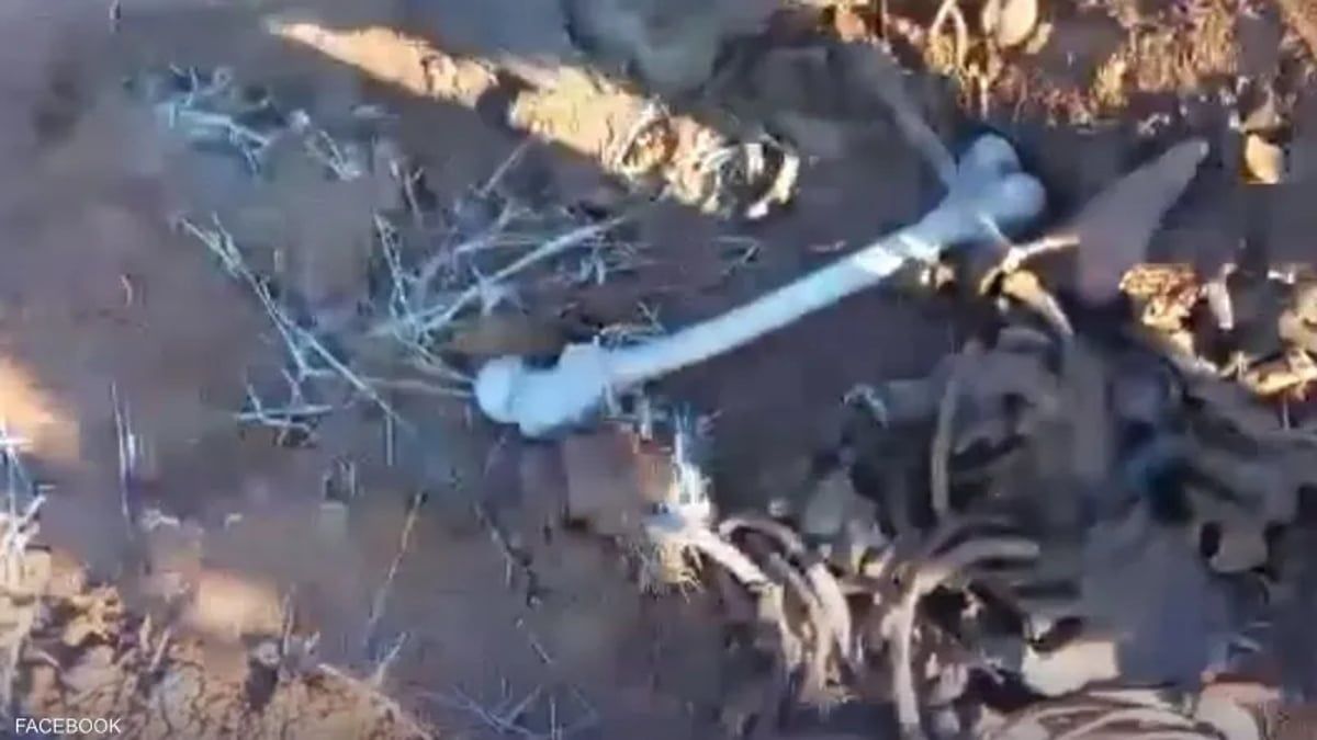 وتظهر الصور أن الجثث قديمة وبقيت منها فقط عظامٌ، وأبلغ الأهالي الجهات المختصّة للتعامل مع الموقف.