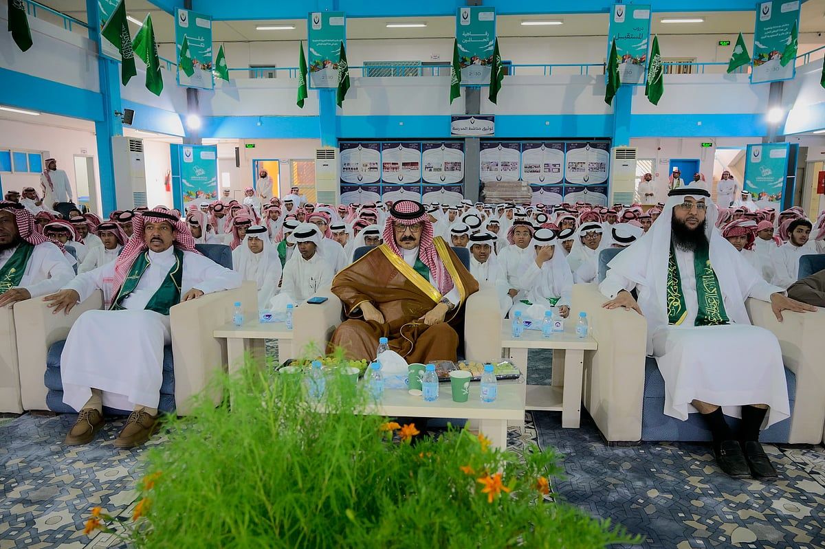 وتضمن الحفل كلمة لمدير المدرسة أحمد الخرعان، أكد خلالها أن مناسبة اليوم الوطني محطة تاريخية تستحضر جهود المؤسس الملك عبدالعزيز – طيب الله ثراه – في توحيد البلاد، وما تحقق من إنجازات كبرى في عهد القيادة الرشيدة.