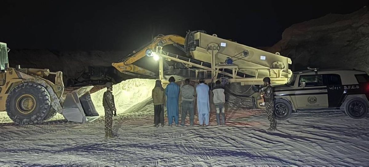 ضبطت القوات الخاصة للأمن البيئي (5) مقيمين مخالفين لنظام من الجنسيات الباكستانية، والهندية، والصومالية، واليمنية، لاستغلالهم الرواسب في منطقة .