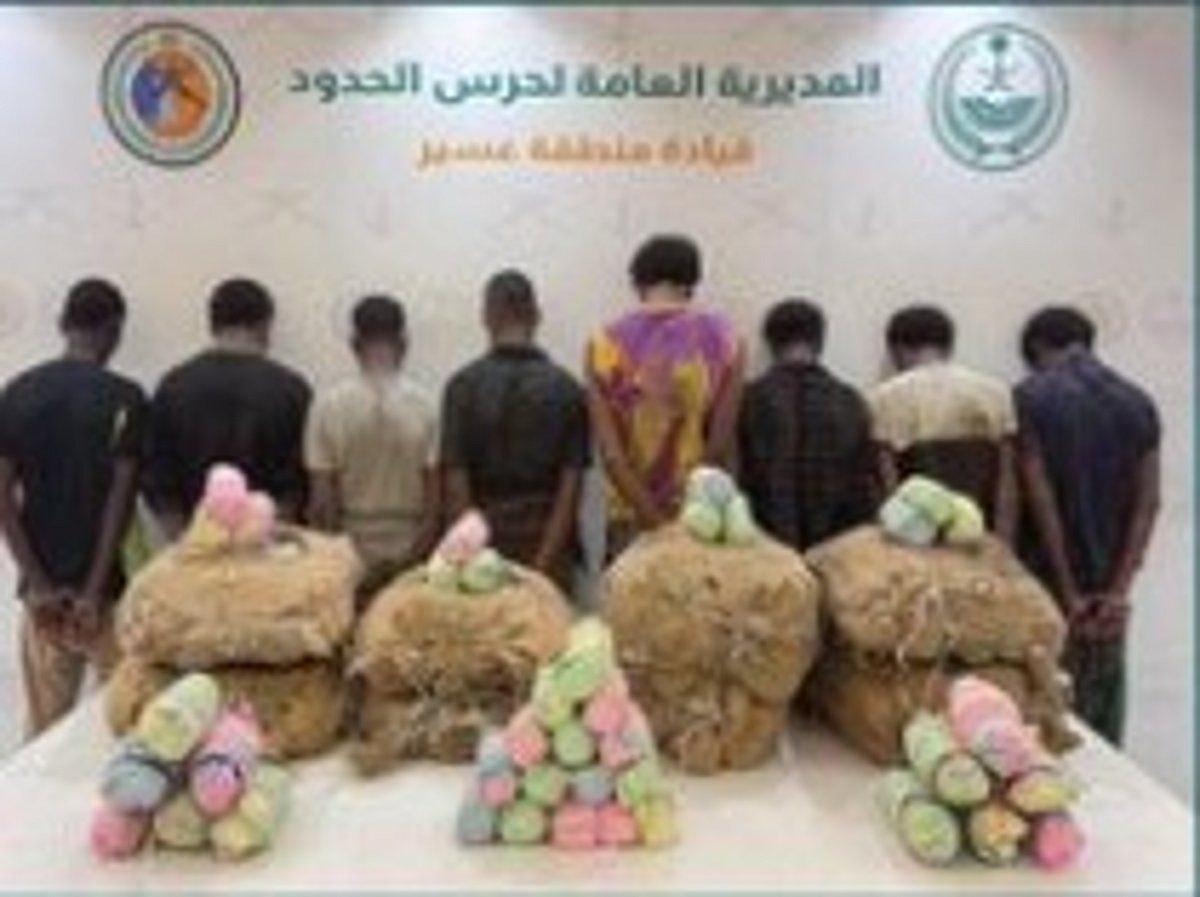 قبضت الدوريات البرية لحرس الحدود في قطاع الربوعة بمنطقة عسير، على (8) مخالفين لنظام أمن الحدود من الجنسية الإثيوبية، لتهريبهم (160) كيلوجرامًا من نبات القات المخدر، واستكملت الإجراءات النظامية الأولية بحقهم، وسلموا لجهة الاختصاص.