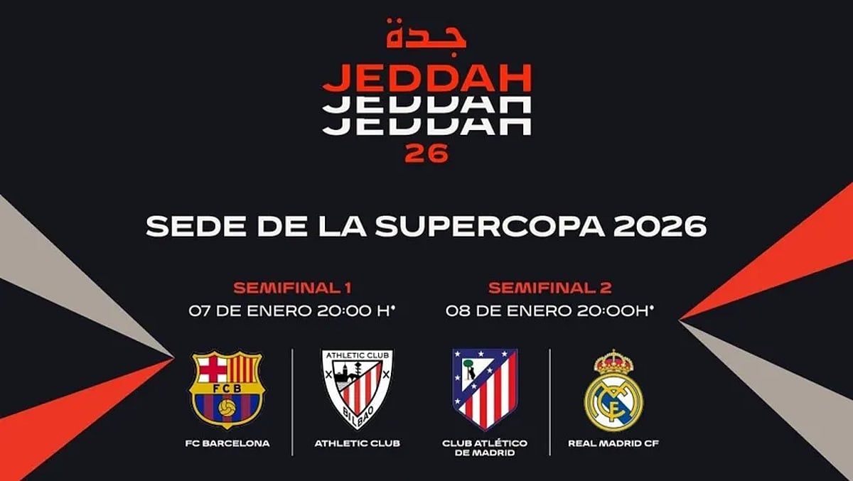 ويواجه برشلونة وأتلتيك بلباو يوم 7 يناير 2026، وأتلتيكو مدريد وريال مدريد يوم 8 يناير 2026، في مباراتي نصف النهائي ، وتقام المباراة النهائية بين الفائزين في نصف النهائي يوم 11 يناير 2026.