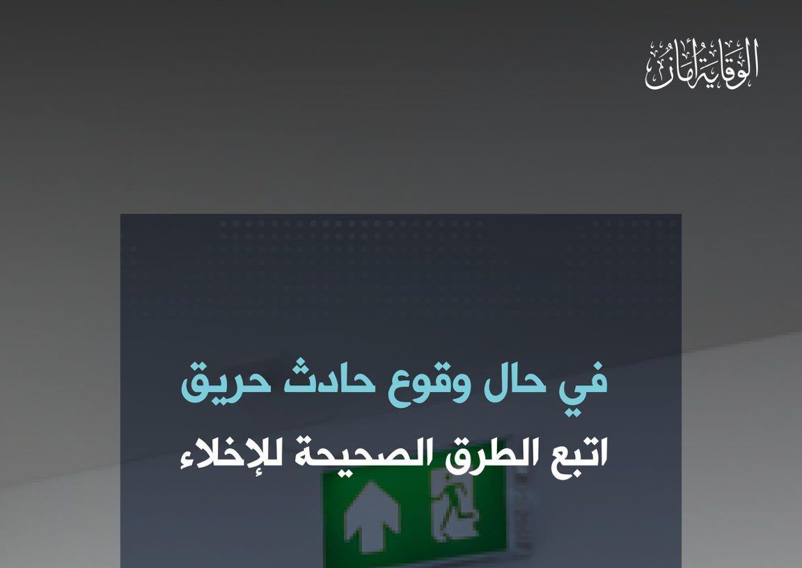 وقال المدني عبر حسابه الرسمي بمنصة إكس إنه يجب اتباع التعليمات الآتية عند وقوع حريق:
