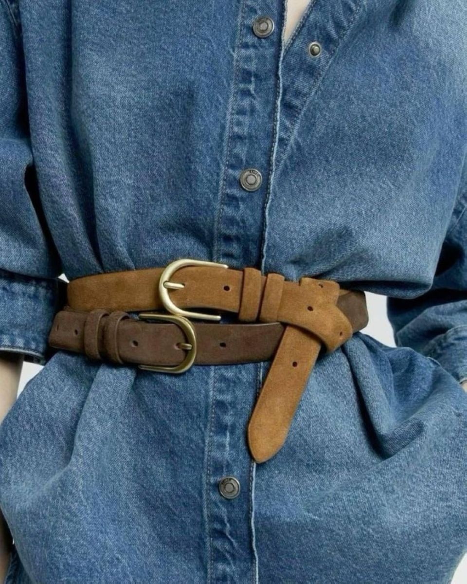 كما ظهرت الأحزمة العريضة المصنوعة من الجلد الطبيعي والمزيّنة بتفاصيل معدنية فاخرة، لتمنح الإطلالة حضورًا قويًا يوازن بين الكلاسيكية والجرأة.
