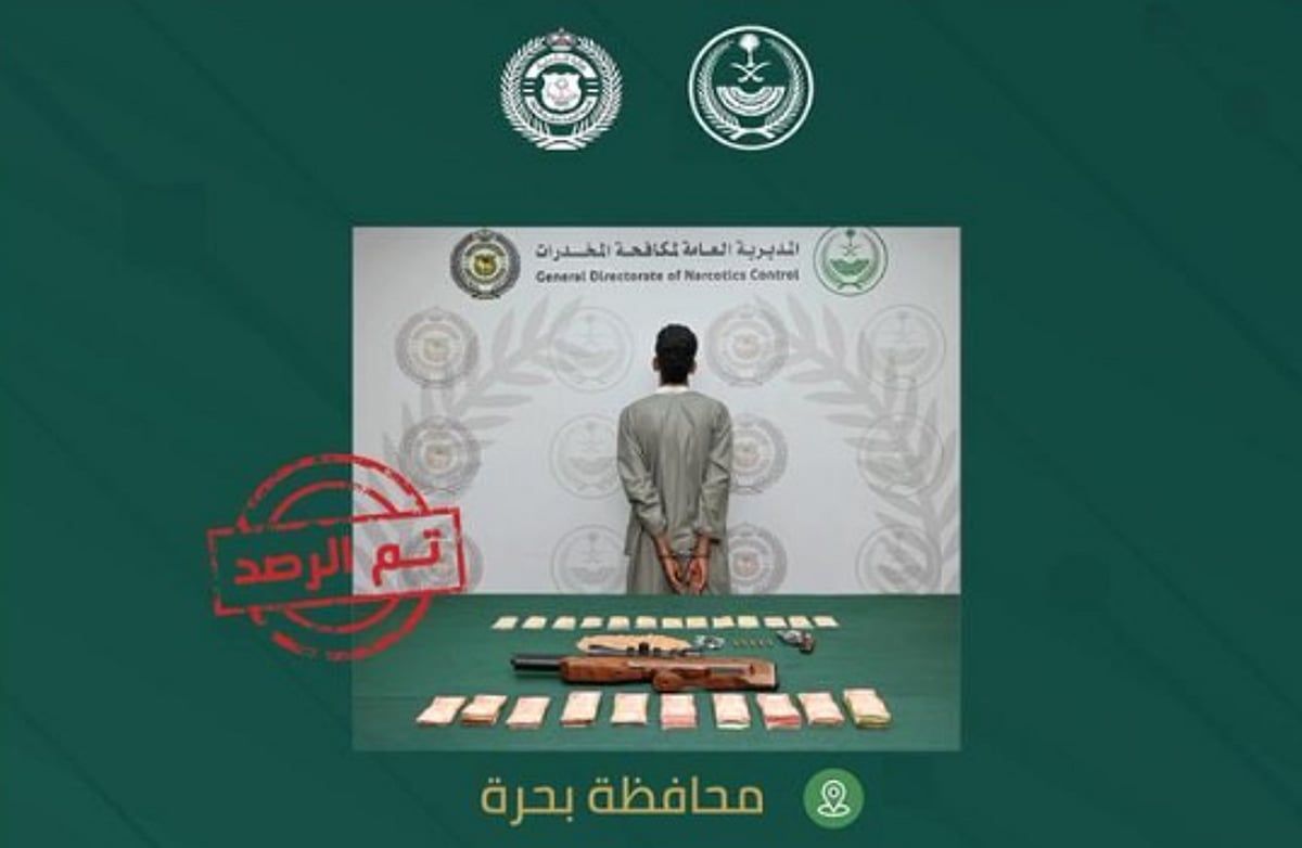 أعلنت المديرية العامة لمكافحة المخدرات، القبض على مواطن بمحافظة بحرة لترويجه مادتي الحشيش والإمفيتامين المخدرتين.