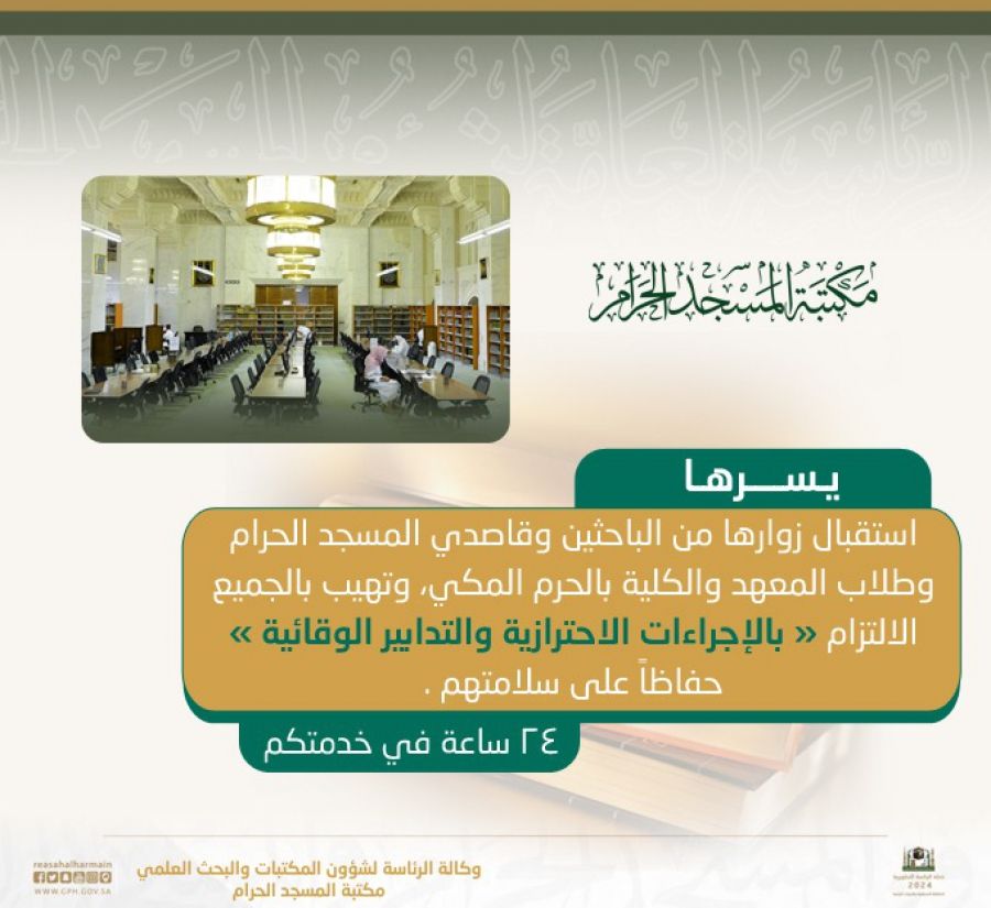 دعت الهيئة العامة للعناية بشؤون الحرمين، ضيوف الرحمن إلى مراعاة آداب زيارة المسجد الحرام لتحقيق تجربة تعبدية آمنة مطمئنة.