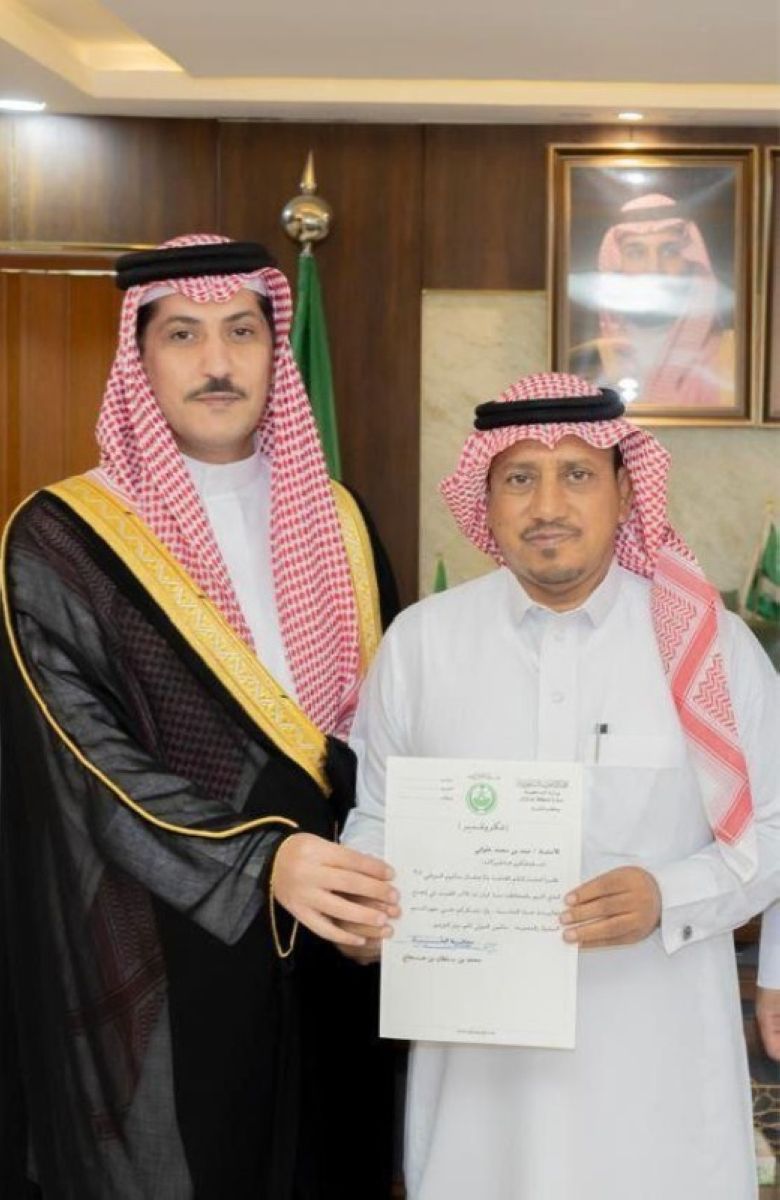 كرم محافظ الحرث محمد بن سلطان بن هجاج، محرر «عكاظ» بمنطقة جازان الزميل عبده علواني؛ نظير مشاركته في فعاليات الاحتفاء باليوم الوطني.