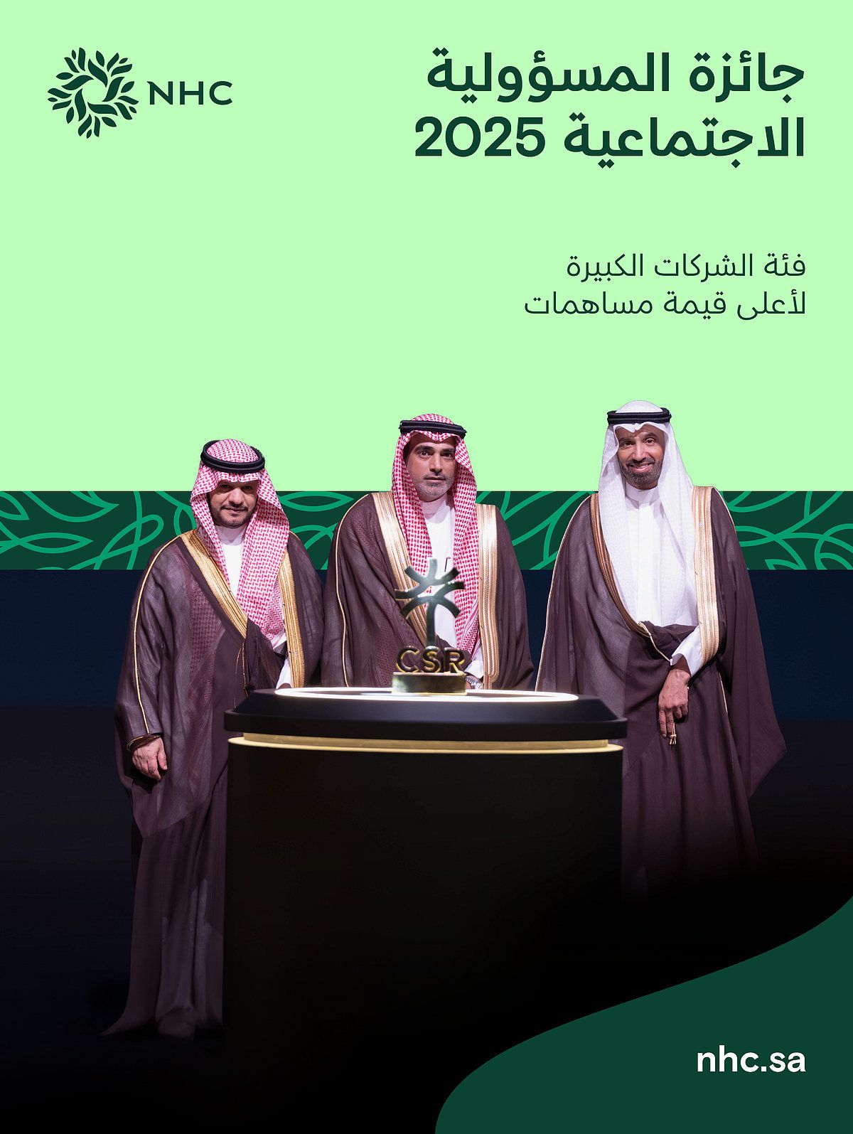 برعاية معالي وزير الموارد البشرية والتنمية الاجتماعية المهندس أحمد بن سليمان الراجحي، حصدت NHC جائزة المسؤولية الاجتماعية لعام 2025 في فئة الشركات الكبيرة عن أعلى قيمة مساهمات، وذلك خلال حفل جائزة المسؤولية الاجتماعية للشركات.