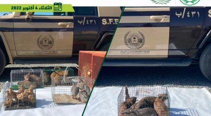 تمكنت الدوريات الميدانية للقوات الخاصة للأمن البيئي وهي تؤدي مهامها في تنفيذ نظام البيئة في منطقة المدينة المنورة من القبض على المواطن محمد عطية الله الجهني، لارتكابه مخالفة الصيد دون ترخيص، بحوزته صقران، وكائن فطري مصيد (طائر الكروان)، وجرى إيقافه واتخاذ الإجراءات النظامية بحقه، وإحالته إلى الجهة المختصة.