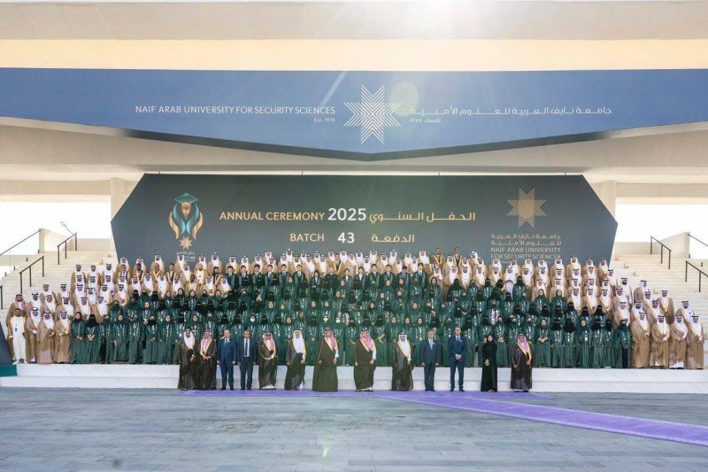 رعى صاحب السمو الملكي الأمير عبدالعزيز بن سعود بن نايف بن عبدالعزيز الداخلية رئيس المجلس الأعلى لجامعة نايف العربية للعلوم الأمنية، اليوم، الحفل السنوي للجامعة، وتخريج (374) طالبًا وطالبة من (11) دولة من الدفعة (43)، وذلك بمقر الجامعة في مدينة .