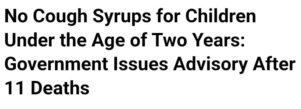 السبت، 04 أكتوبر 2025 11:06 صأصدرت المديرية العامة للخدمات الصحية في الهند، التابعة لوزارة الصحة ورعاية الأسرة الهندية، تحذيرًا رسميًا يمنع وصف أو صرف شراب السعال للأطفال دون سن الثانية، بعد الإبلاغ عن وفاة 11 طفلًا في ولايتي ماديا براديش وراجستان إثر تناولهم شراب سعال يُشتبه في كونه مغشوشًا، بحسب موقع " تايمز ناو".