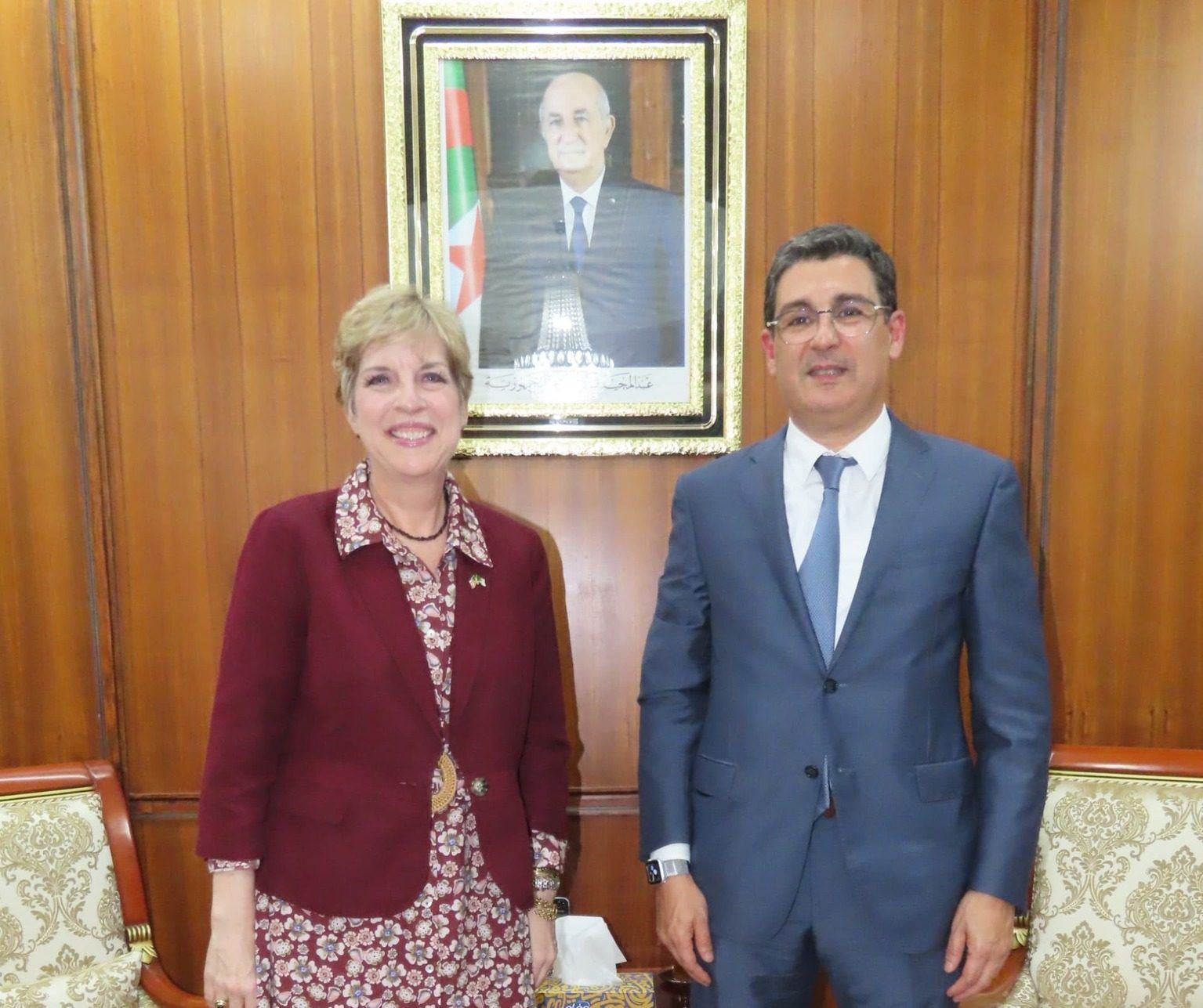 في مستهل اللقاء، عبّرت سعادة السفيرة عن رغبة بلادها في توطيد التعاون بين المتعاملين الاقتصاديين الجزائريين والأمريكيين في قطاع الصناعة الصيدلانية. مثمّنةً المجهودات الكبيرة التي يبذلها القطاع الصحي الجزائري في مجال الوقاية، خاصة من خلال البرامج الوطنية للتلقيح ومكافحة الأمراض المعدية.