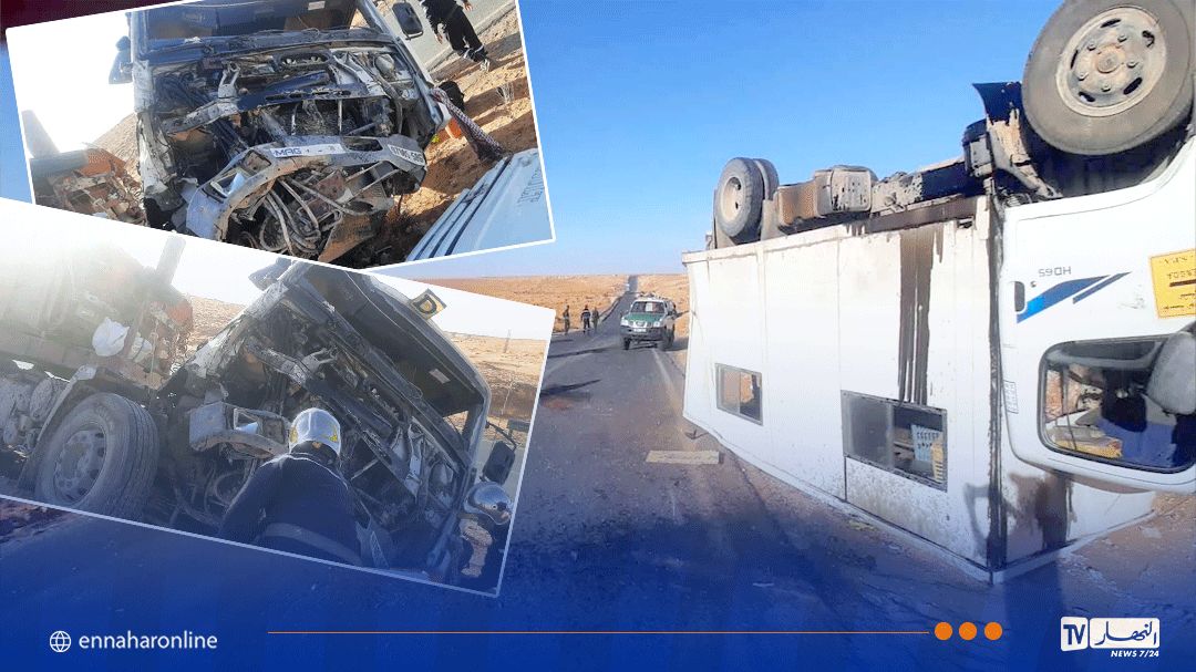 وحسب بيان للحماية المدنية، تدخلت الوحدة الثانوية بالعبادلة على الساعة 15:48 لأجل حادث اصطدام وقع بين شاحنة ذات مقطورة بشاحنة آخرى.