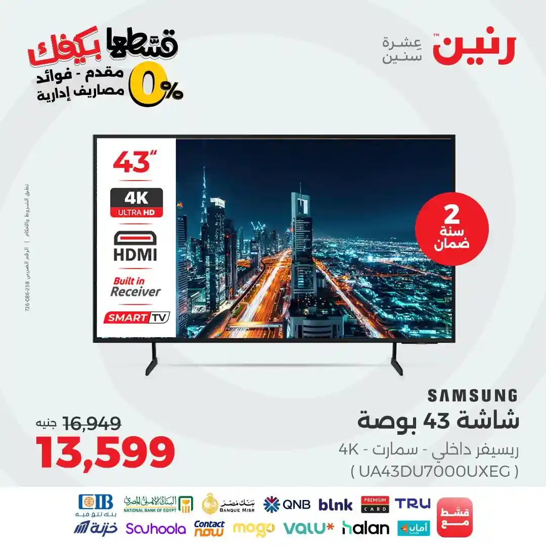 عروض رنين سارية يوم 8 حتى الاحد 12 اكتوبر 2025 خصومات شاشات سامسونج بجميع الفروع