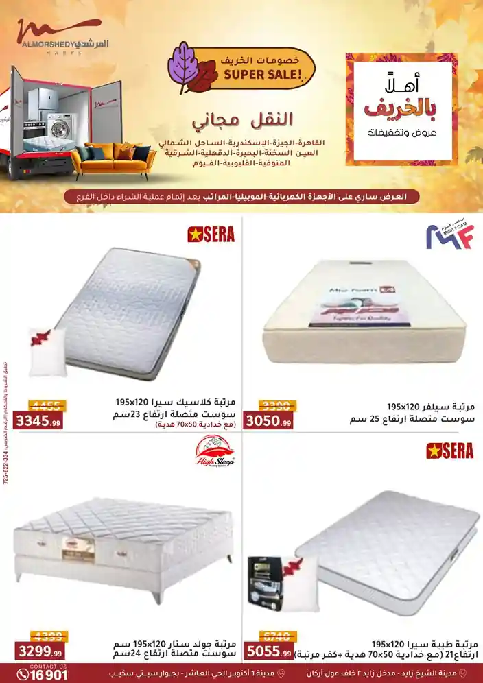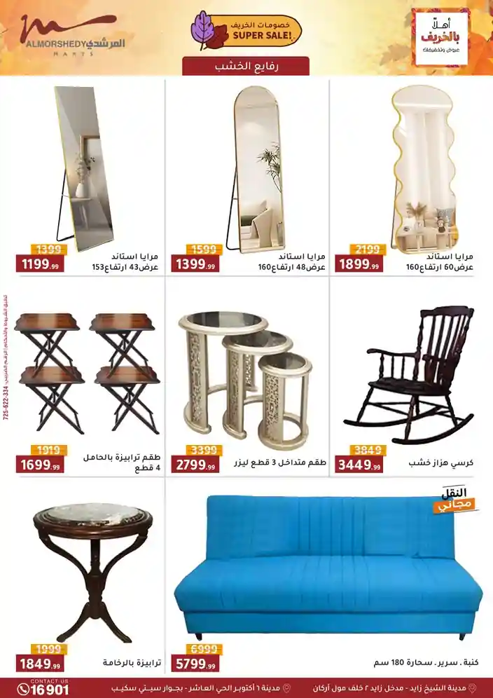 عروض جديدة من أسواق المرشدي  مع اكبر مهرجان للتخفيضات في مصر خصومات حتى 70%  وقسط براحتك بدون فوائد بأسعار العروض المخفضة على 12 شهر لحاملي بطاقة ائتمان CIB أو براحتك مع VALU بدون مقدم حتى 60 شهر أو بدون مقدم وبدون فوائد مع نظام هاتريك وكمان النقل مجاني للقاهرة والجيزة والقليوبية على قسم الأجهزة الكهربائية والموبيليا والمراتب ( تطبق شروط المكان ) خصومات على جميع الأقسام أدوات منزلية – اجهزة كهربائية – مفروشات – موبيليا – نجف – سجاد – مراتب – ملابس رجالي وحريمي وأطفالي ومستلزمات ولعب الأطفال وجاليري وأقسام تانية كتير استمتع بالتسوق في أسواق المرشدي مع أكتر من 12 قسم و أكثر من 10,000 منتج يعني كل اللي بتحلم بيه عند المرشدي هتلاقيه