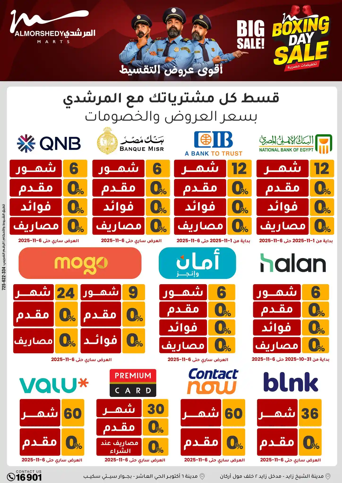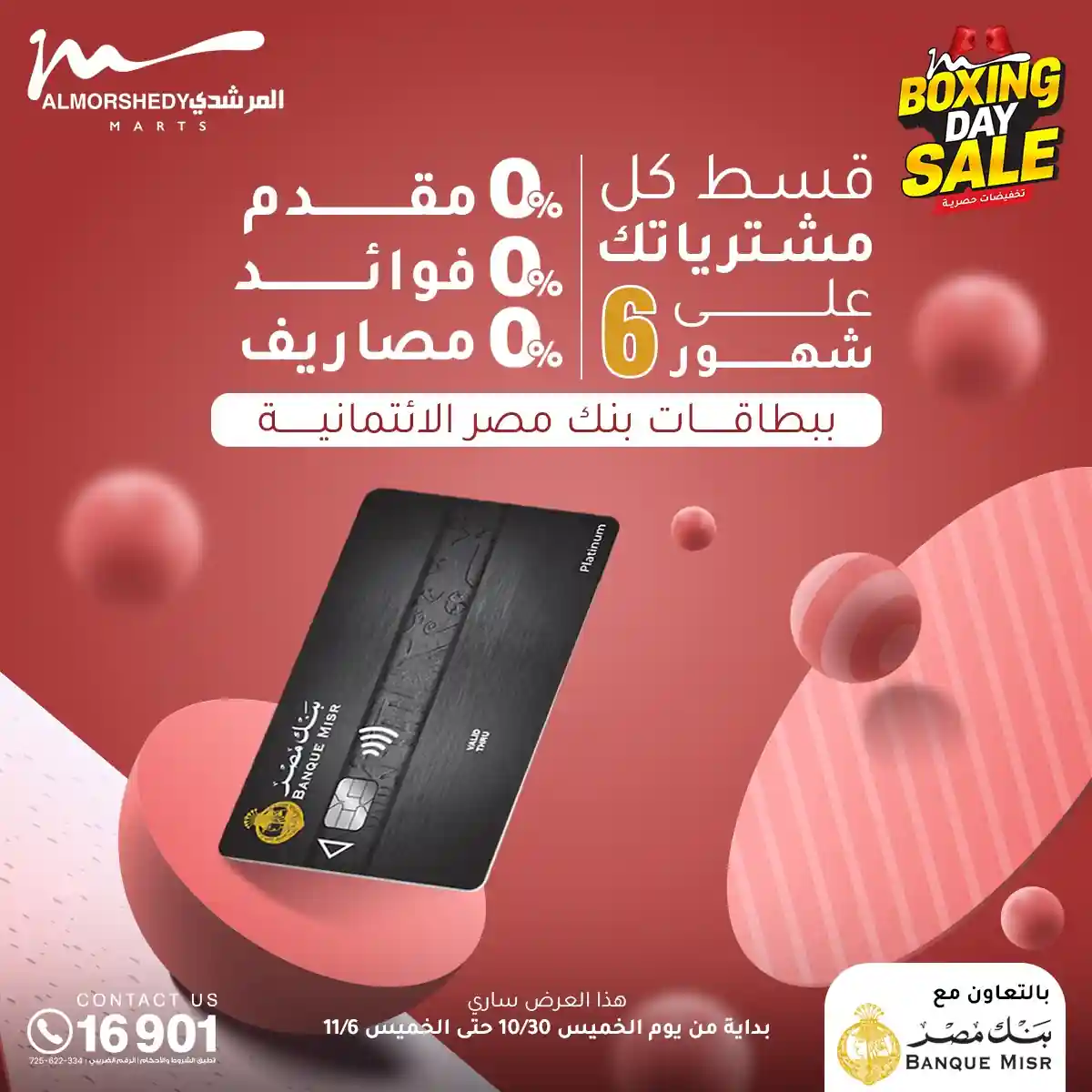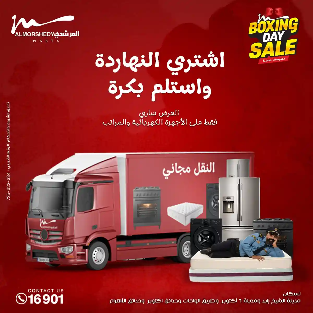 عروض جديدة من أسواق المرشدي  مع اكبر مهرجان للتخفيضات في مصر خصومات حتى 70%  وقسط براحتك بدون فوائد بأسعار العروض المخفضة على 12 شهر لحاملي بطاقة ائتمان CIB أو براحتك مع VALU بدون مقدم حتى 60 شهر أو بدون مقدم وبدون فوائد مع نظام هاتريك وكمان النقل مجاني للقاهرة والجيزة والقليوبية على قسم الأجهزة الكهربائية والموبيليا والمراتب ( تطبق شروط المكان ) خصومات على جميع الأقسام أدوات منزلية – اجهزة كهربائية – مفروشات – موبيليا – نجف – سجاد – مراتب – ملابس رجالي وحريمي وأطفالي ومستلزمات ولعب الأطفال وجاليري وأقسام تانية كتير استمتع بالتسوق في أسواق المرشدي مع أكتر من 12 قسم و أكثر من 10,000 منتج يعني كل اللي بتحلم بيه عند المرشدي هتلاقيه