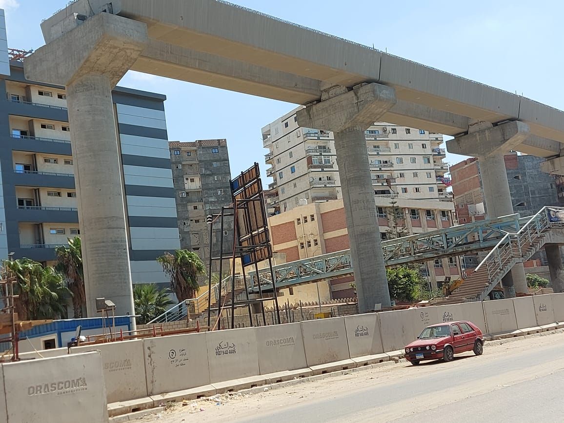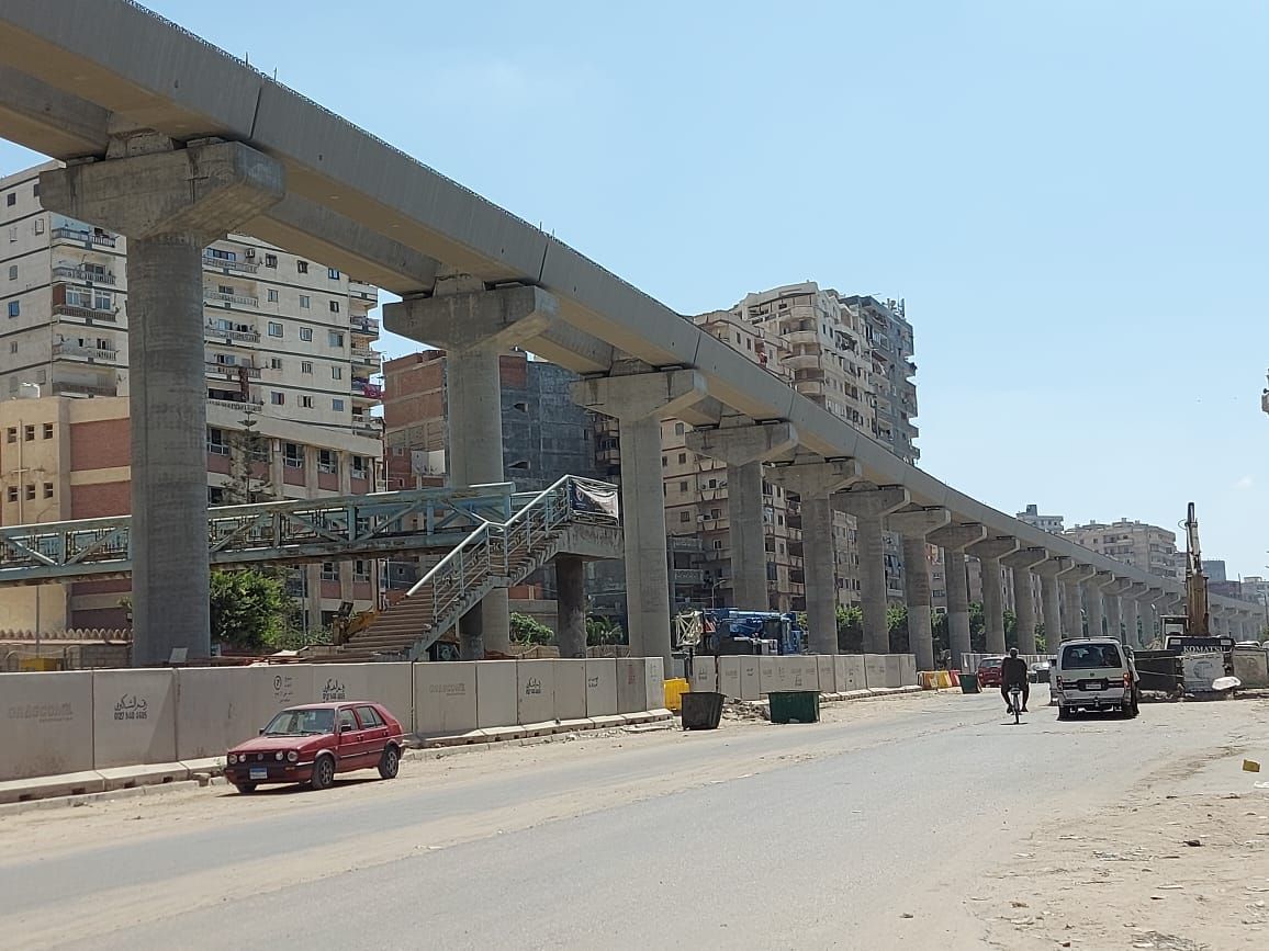 وتم الانتهاء من الأعمدة الخرسانية فى المنطقة من أبوقير الى المعمورة، والمنتزة، حيث يسير المترو فى مسار علوى بطول نحو 15كم من محطة الظاهرية حتى أبو قير، ويتم استكمال إنشاء الأعمدة الخرسانية بمناطق المندرة والعصافرة وسيدى بشر، مع إزالة محطات القطار القديم فى تلك المناطق، والتجهيز لوضع أساسات المحطات الجديدة.