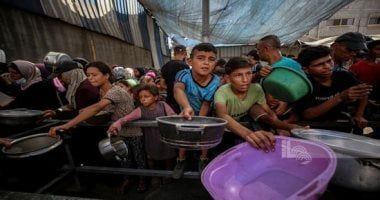 الجوع يلاحق النازحين في غزة.. الحشود ترفع الأوانى الفارغة بحثا عن لقمة