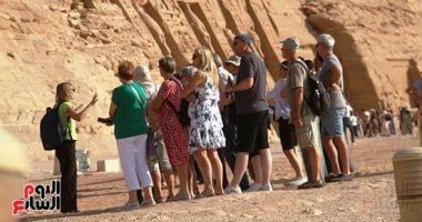 الثلاثاء، 21 أكتوبر 2025 12:37 مشهد معبد أبو سمبل السياحي بمحافظة أسوان اليوم انتعاشة ملحوظة في الحركة السياحية، وذلك قبل يوم واحد فقط من الظاهرة الفلكية الفريدة لتعامد الشمس على وجه الملك رمسيس الثاني، والتي ينتظرها الزوار من مختلف دول العالم.