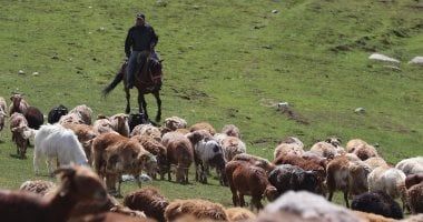 تشهد منطقة شينجيانغ فى الصين بدء هجرة الماشية من الحقول الجرداء إلى المراعى الخضراء، حيث يقود رعاة الحيوانات من بلدة كاراماجاي من منطقة ألتاي بشينجيانغ، مواشيهم عبر طريق ساربولاك ضمن رحلة الهجرة الموسمية، وذلك حسبما نشرت صحيفة الشعب اليومية صورا