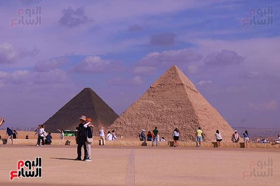 السائحون يستمتعون الأجواء في هضبة الأهرام