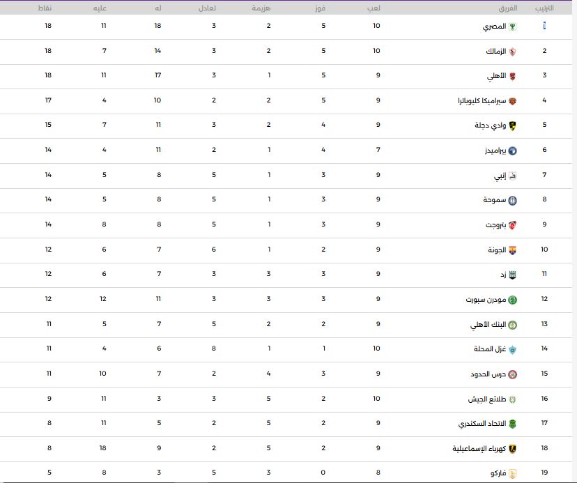 انتهت مباريات اليوم الثانى من الدورى المصرى، حيث أسفرت عن تعادل الزمالك مع غزل المحلة بهدف لمثله، بينما حقق الجونة فوزا ثمينا خارج ملعبه على طلائع الجيش بهدف دون مقابل.
