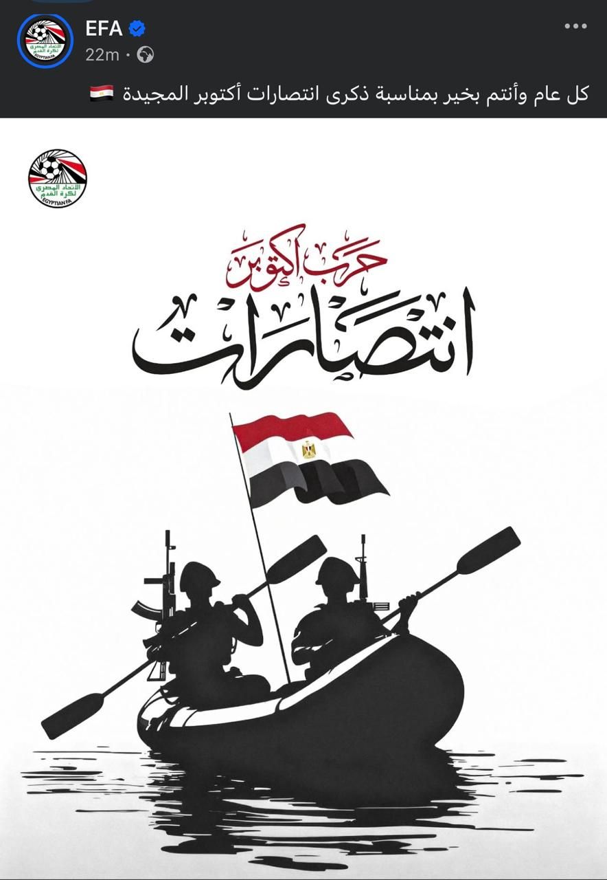 وكتب حساب اتحاد الكرة: "كل عام وأنتم بخير بمناسبة ذكرى انتصارات أكتوبر المجيدة