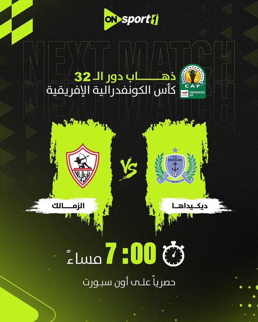 تنقل قناة أون سبورت مباراة الزمالك وديكاداها الصومالى ويسبق اللقاء استوديو تحليلى يضم كوكبة من نجوم الكرة المصرية.