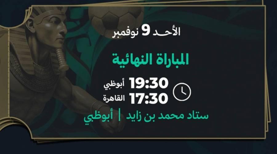 أعلنت رابطة المحترفين الإماراتية، عن طرح تذاكر حفل ومباراة نهائي بطولة السوبر المصري، المقرر إقامتها يوم 9 نوفمبر المقبل، والتي تجمع الفائز من مباراتي نصف النهائي في استاد محمد بن زايد في أبو ظبي.